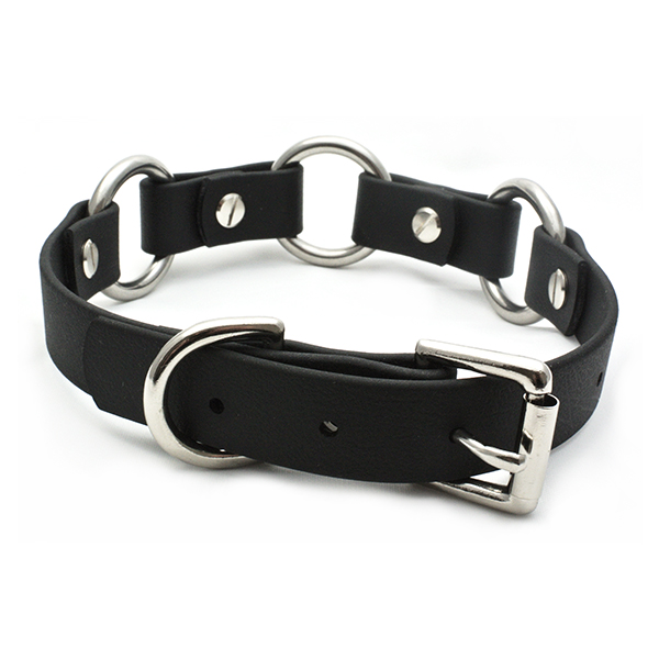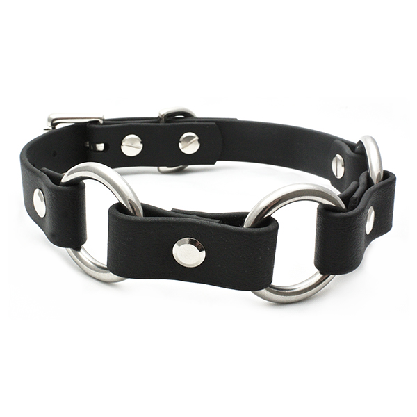 This is a bold and stylish design with two stainless steel O-rings hanging from this 19mm wide collar. It screams elegance and adds an alternative and fashionable look to any outfit.