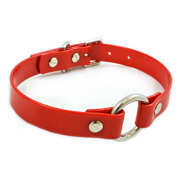 Single O-Ring Red Patent Style Vegan Leather Collar